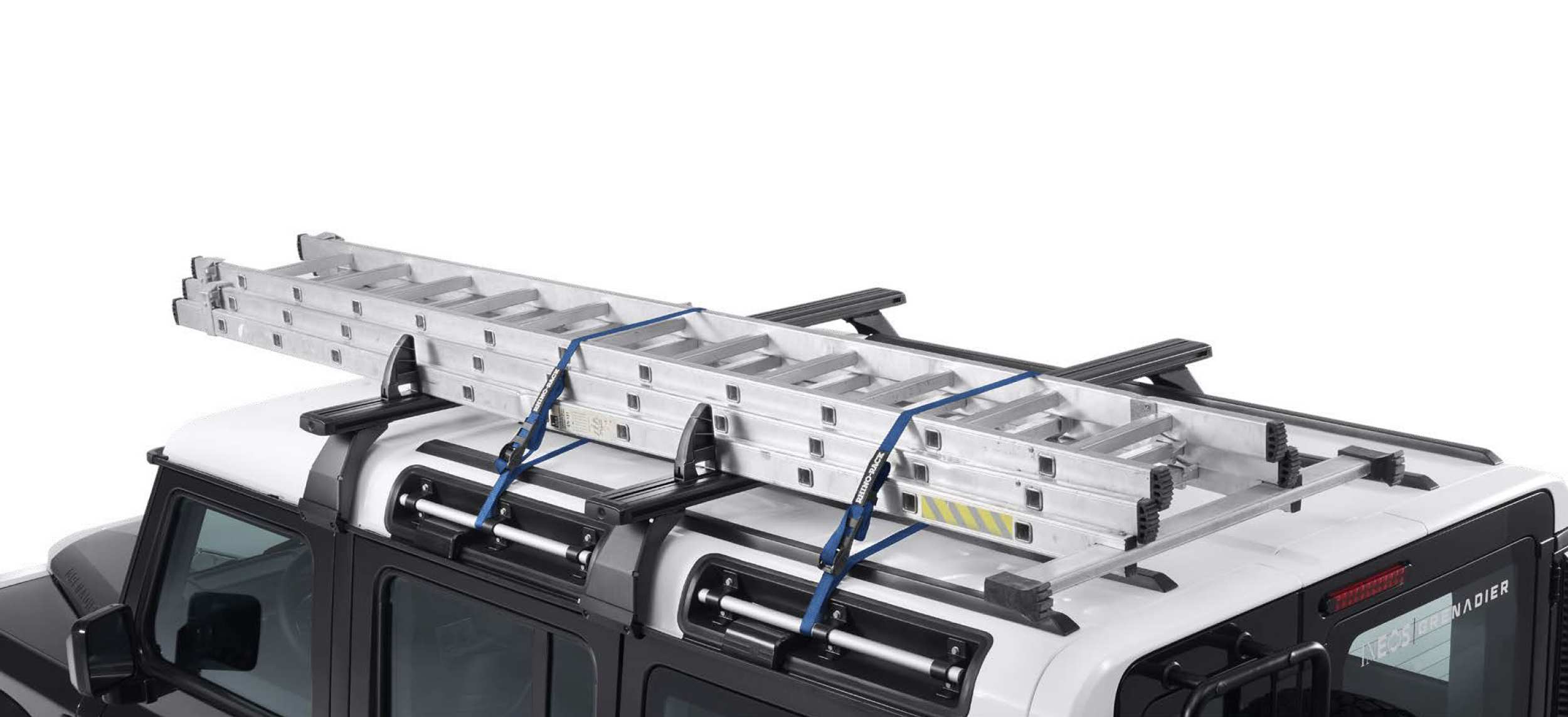 Kinnituvad katuseraamile. Koormahoidja ja koormarihmad müüakse eraldi. Redel ei kuulu komplekti. Varustuse laadimine katusele võib muuta sõiduki juhitavust. Sõiduki, lisavarustuse või lisaseadmete (või nende osade) üle koormamine ei ole lubatud.